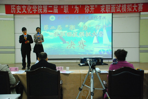 2013年11月17日,我院第二届“职为你开”求职面试模拟大赛决赛在大学生活动中心101室拉开战幕。本届求职面试模拟大赛自10月31日启动以来,经过初赛、复赛,共有六位选手一路过关斩将,在比赛中脱颖而出,站上决赛舞台。