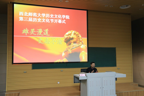三月的师大校园,春暖枝头,百花争妍。3月29日下午,我院以“雄关漫道——纪念红军长征胜利八十周年”为主题的第三届历史文化节开幕式暨首场学术专题讲座在新校区第一报告厅隆重举办。校团委、学院领导,以及我院师生共计三百余人参加了当天的活动。