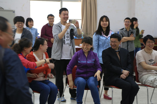 在运动会进行期间,我院还于5月13日上午10:30在大学生活动中心101室举办了全体教职工联谊会。老师们在欢乐的游戏活动中,露出了笑容,放松了身心,增进了友谊,加强了团结。