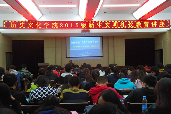 11月12日晚,我院在教学10号楼D座多功能报告厅,举办了2015级本科生新生入学教育讲座。学院党委书记王君朝为170余名新生做了题为《如厕事小,“小”中见“大”----“世界厕所日”前话日本“厕所文化”》文明礼仪讲座。