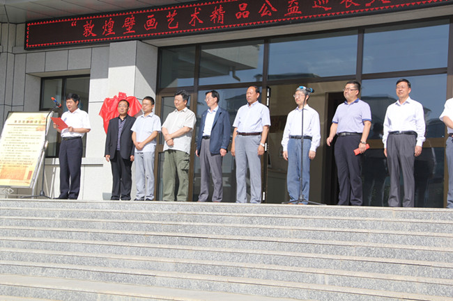 2016年6月17日,我院副院长刘再聪教授、文物与博物馆硕士学位教育中心主任黄兆宏副教授到高台县参加“敦煌壁画艺术精品公益巡展走进高台”开幕仪式及高校教学实践基地授牌仪式。敦煌文物研究院副院长赵声良,张掖市文物局局长汪永虎,高台县县委宣传部长吴多军,高台县副县长闫廷亮,高台县政协副主席李文红等领导及敦煌研究院、浙江大学、兰州财经大学、河西学院、9499威尼斯等单位的专家代表及高台县文博系统人员共200多人出席开幕式。
