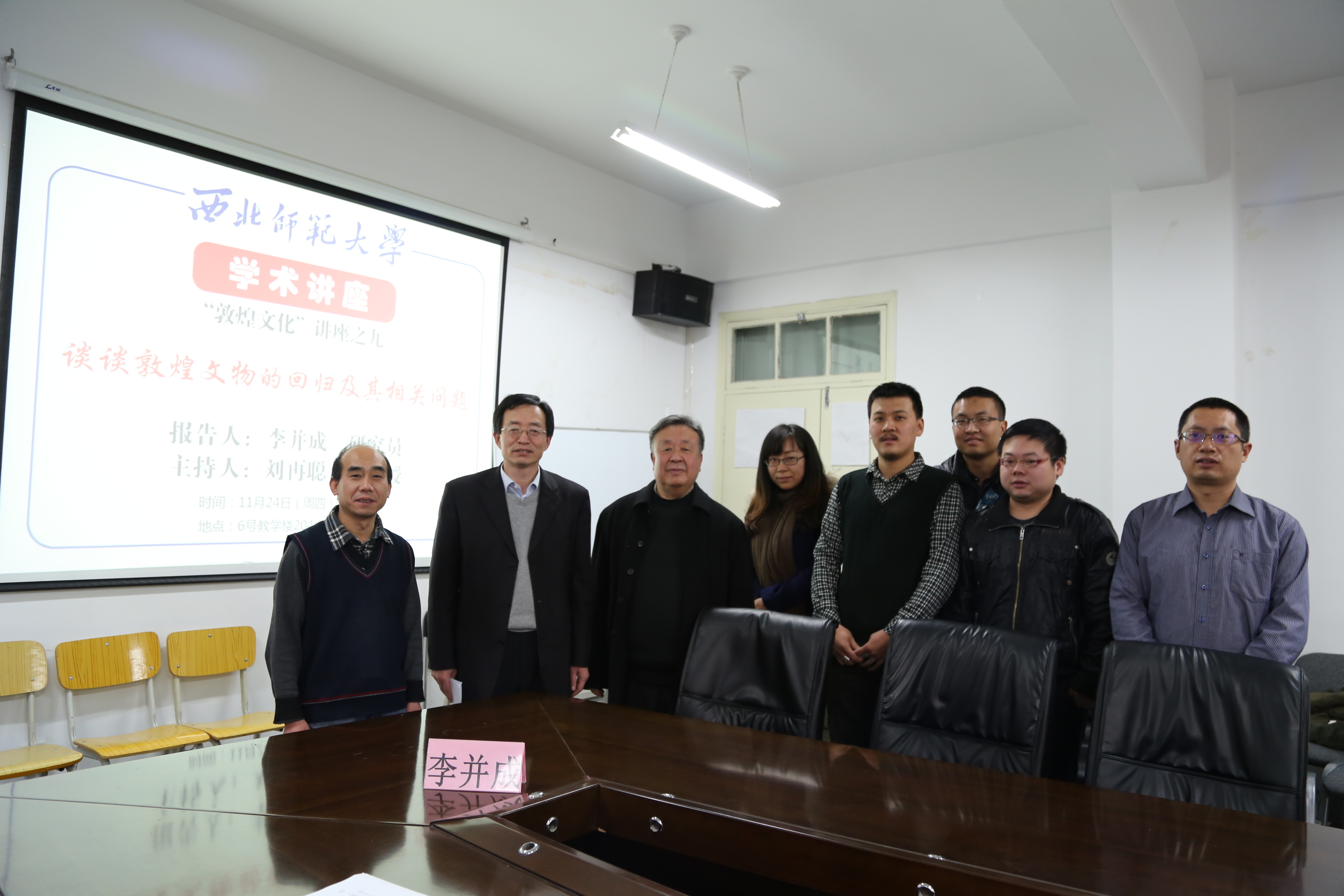 2016年11月24日下午,李并成研究员在我校6号教学楼204会议室作了题为《谈谈敦煌文物的回归及其相关问题》的学术报告。报告由刘再聪教授主持,我院硕士研究生、博士研究生50余人参加报告会。
