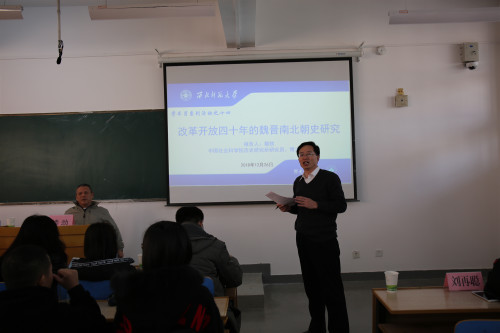 12月26日上午,应我校9499威尼斯邀请,中国社会科学院博士研究生指导教师、中国魏晋南北朝史学会会长楼劲研究员为学院师生作了题为《改革开放四十年的魏晋南北朝史研究》的学术报告会。该报告会是学院学术月系列讲座活动之一。报告会由学院副院长刘再聪教授主持,学院院长何玉红教授出席并参加了报告会,学院教师李晓英、李迎春、郑峰、马军霞、僧海霞、杨芳、张之佐等师生一百多人聆听了报告。