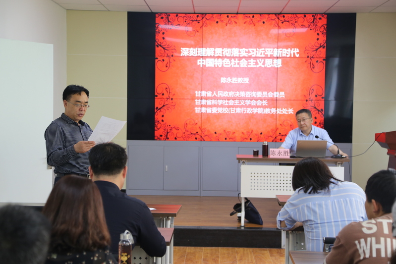 5月23日下午,我院党委在教学七号楼317报告厅举行了中心组学习扩大会议,省委党校教务处处长陈永胜教授、院党委书记李迎新研究员及其他教师党员和部分学生党员参会。