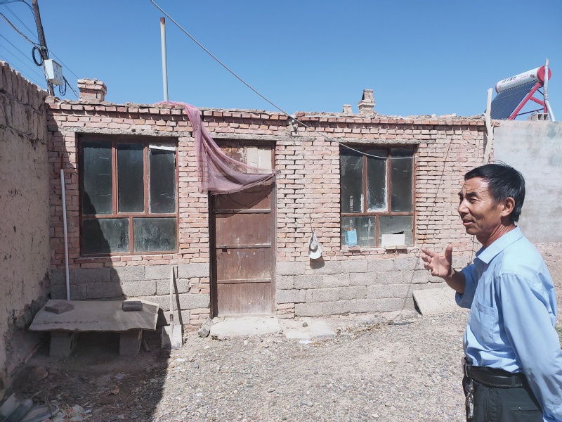7月19日,我们乘上前往敦煌的列车,展开了为期五天的访谈、调研。定西村的村民大多是九十年代搬迁于此。谈及刚搬迁之时的生活时,他们的眼神总是盯着一个地方,陷入回忆中,有人沉默之久只会摆摆手告诉我们那段日子太苦,他们黝黑的面庞,干涸的唇裂,我们不忍追问。也有人愿意与我们倾诉,犹记得一位婶子提及他们刚来修住房时,孩子太小没人照看,他们就在一边搭建房屋,在另一边地上刨了一个坑,垫上东西,将孩子放在坑里,风沙大得连孩子的脸都看不清。