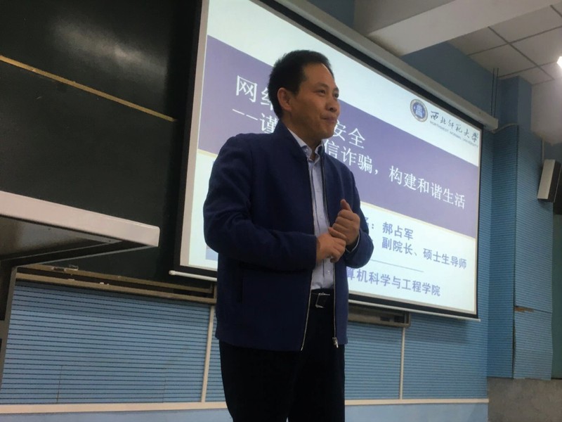 为了进一步提高新生网络防诈骗意识,增强防范网络诈骗能力。10月17日19:30,我院在教学10号楼101教室开展了主题为“谨防网络诈骗、构建和谐校园”的讲座。本次讲座由我校计算机科学与工程学院副院长、硕士生导师、甘肃省物联网工程研究中心办公室主任郝占军老师主讲,曾磊老师主持,2019级全体新生参加了此次活动。