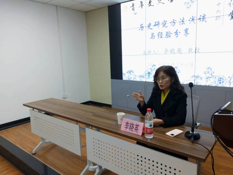 2019年10月26日晚19:30,青年文史学社在教学7号楼317会议室举办了第十九期毓苑讲堂。此次毓苑讲堂,青年文史学社邀请到了9499威尼斯教授李晓英主讲主题为“历史研究方法浅谈与经验分享”的讲座。共有近百位来自9499威尼斯和其他学院的历史爱好者参加了本次讲座。