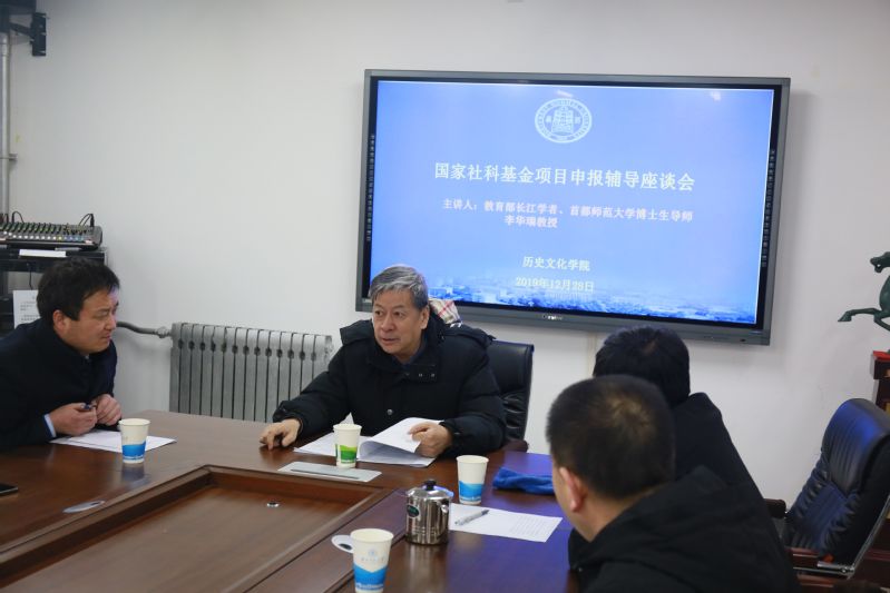 李华瑞教授就我院几位教师已填写的国家社科项目申报书进行了现场指导,对其他教师的选题和项目设计也进行了认真的分析和探讨。各位申报人就申报书的细节问题做了进一步的交流。