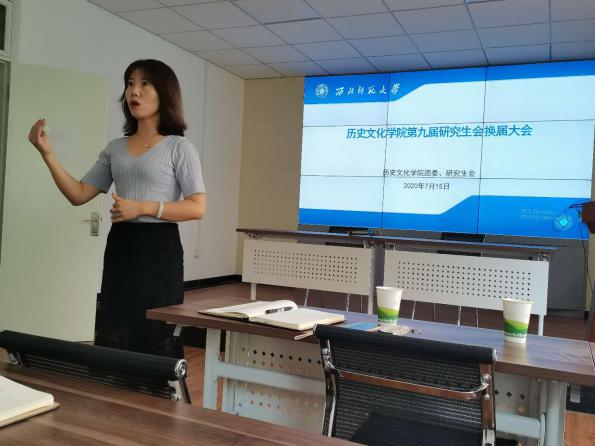 2020年7月15日,我院举行了第九届研究生会换届大会。党委副书记柴蓉老师、辅导员王浩老师、研究生秘书鲁宸伊老师及研究生会全体成员参加了本次会议。会议由研究生会原主席张蓉同学主持,