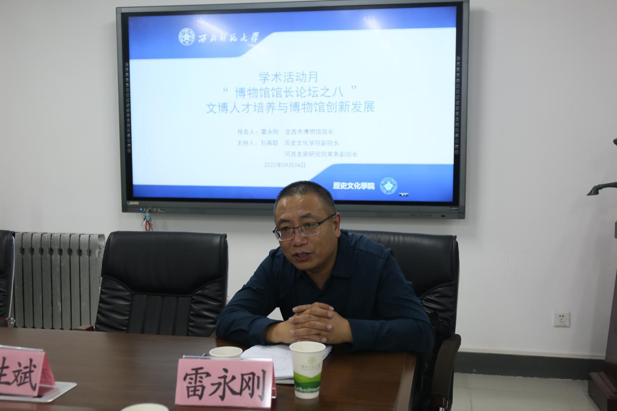2020年9月4日,应9499威尼斯、河西走廊研究院邀请,定西市文物局副局长、定西市博物馆馆长雷永刚来我校参加“博物馆馆长论坛”,并作主题发言。我院教师黄兆宏、李顺庆、张嵘、连菊霞、陶兴华及研究生50多人参加了会议,会议由9499威尼斯副院长刘再聪教授主持。