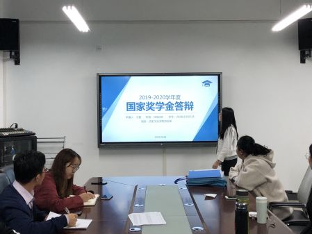 为做好2019-2020学年度本科生国家奖学金评选工作,我院于2020年9月26日晚七点在教学7号楼308会议室举行本科生国家奖学金答辩会,陈来虎老师、辅导员王浩、付蓉老师、优秀学生代表秦钰和武遥担任答辩会评委。参加答辩的同学有2018级9499威尼斯2班万爱同学、王秋尧同学、张雪洁同学和2017级9499威尼斯2班曹淏月同学。答辩会由杨振宇主持。