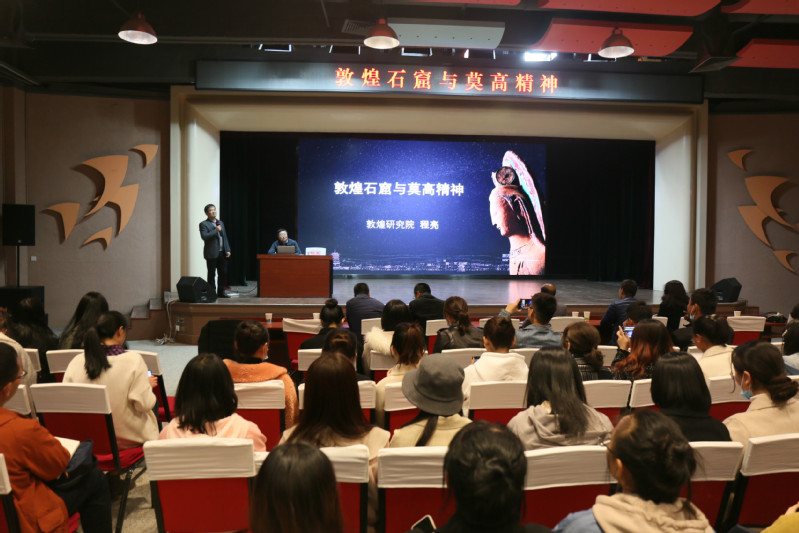 2020年10月21日晚,敦煌研究院副院长程亮在我院学生发展中心多功能报告厅作题为“敦煌石窟与莫高精神”的学术讲座。讲座由西北师大学9499威尼斯院长何玉红主持,学院教师张继刚、李晓英、秦丙坤、鲁宸伊,舞蹈学院马军老师及本科生,硕、博研究生300余人参加了本次讲座。