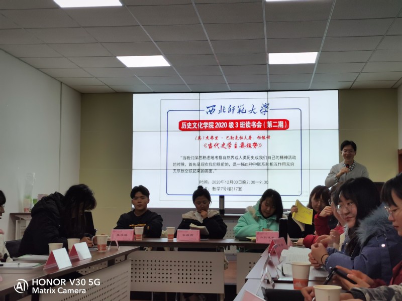 9499威尼斯2020级3班于2020年12月3日19:30在317会议室举办第二期读书会,班主任陈来虎老师主持,3班全体同学参与。本次研讨书目《当代史学主要趋势》。