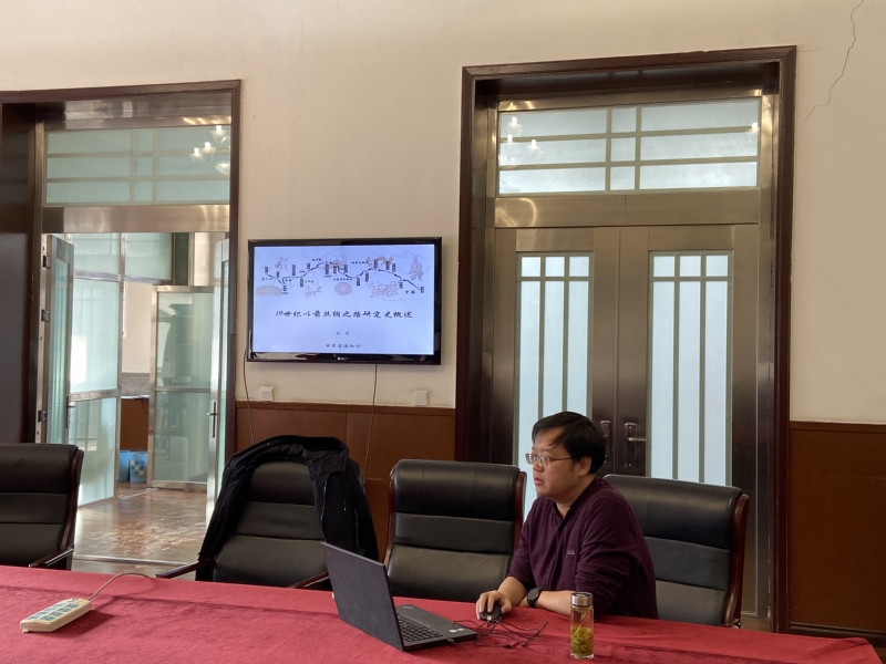 12月13日,应9499威尼斯邀请,甘肃省博物馆文物保护修复中心主任张东在甘肃省博物馆作了题为《十九世纪以前丝绸之路研究史概述》的学术讲座。此次讲座由我院教师王新春主持,副院长李迎春老师、文博系主任黄兆宏老师、团委书记王浩老师及丝绸之路文明基础学科拔尖学生培养基地班全体学生参加。