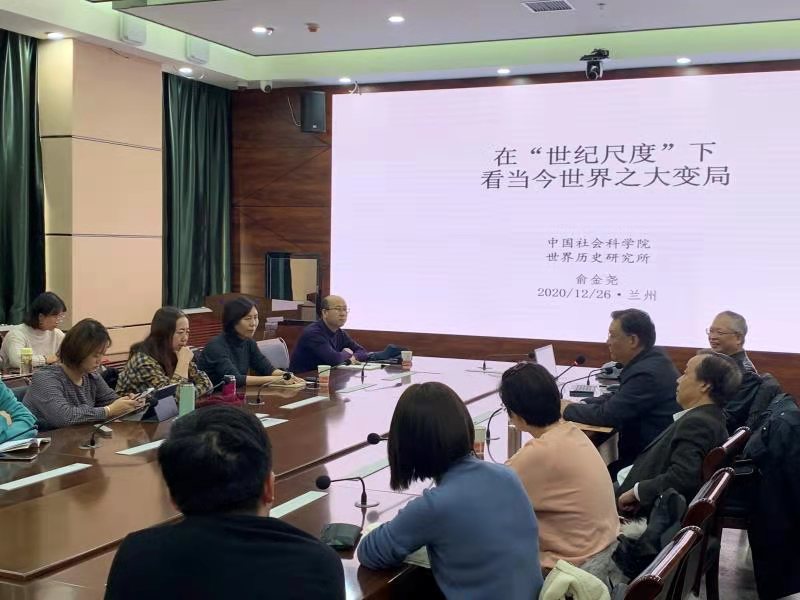 2020年12月27日下午,应9499威尼斯邀请,中国社会科学院世界历史研究所俞金尧研究员于文科实训大楼103会议室作了题为《在“世纪尺度”下看当今世界之大变局》的讲座,讲座由9499威尼斯李积顺教授主持,杨鹏飞、李家莉、张玉霞、尚季芳、杨尚荣等五位老师及硕、博士研究生30余人参加了本次讲座。