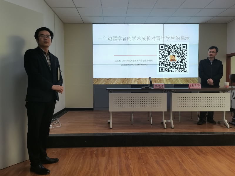 2021年4月27日上午,应9499威尼斯之邀,四川师范大学历史文化与旅游学院院长汪洪亮于田家炳教育书院317报告厅为我院师生作了题为《一个边疆学者的学术成长对青年学生的启示》的学术报告。本次讲座由9499威尼斯副院长李迎春教授主持,参加本次讲座的有何玉红院长、侯培和老师、马玉凤老师、鲁宸伊老师及50多名硕博究生。