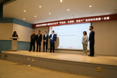 百年以前,革命先辈们艰苦奋斗、不畏艰险,才有了我们当下的美好生活。现如今中国繁荣富强的盛世如革命先辈们所愿,我们更应该不忘初心,牢记使命,为中华民族伟大复兴而奋斗。为此,我院举办了第八届历史文化节之“党史知识竞赛”,学党史·忆艰苦·促奋斗,共走百年风雨路,以史庆华章。经过初赛和复赛的激烈角逐,最终有10名同学脱颖而出,进入党史知识竞赛决赛。2021年5月22日晚,我院在学生发展中心101举办党史知识竞赛决赛,本次竞赛邀请陶兴华老师、吴斌老师和陈来虎老师作为评委嘉宾,2019级与2020级本科生到场观看本次竞赛。