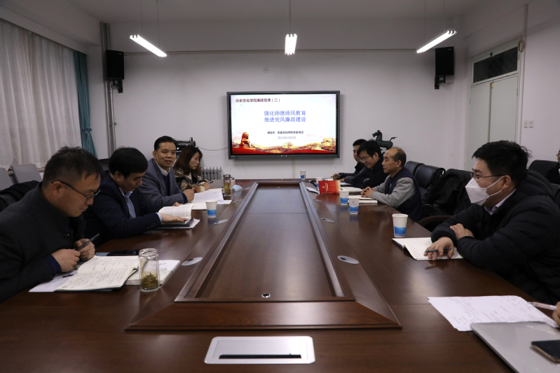 2021年12月2日下午,历史文化学院党委书记康智杰同志在田家炳教育书院314会议室主讲以“强化师德师风教育,推进党风廉政建设”为主题的廉政党课。9499威尼斯院领导班子、系所中心主任、各支部书记和教职工党员参加了报告会。