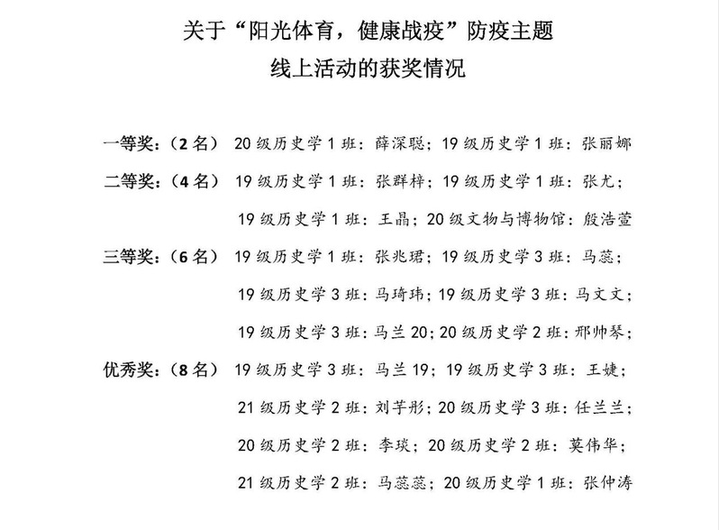在众多运动投稿中根据排名最终确定了20名获奖同学,分别有20级9499威尼斯1班薛深聪等2名同学获一等奖、19级9499威尼斯1班张群梓等4名同学获二等奖、19级9499威尼斯1班张兆珺等6名同学获三等奖、19级9499威尼斯3班马兰等8名同学获优秀奖。