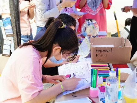 “5.25”与“我爱我”谐音,表明了心理健康节珍爱自我的主题。我院举办的此次活动共包含“心语心愿”、“你画我猜”、“画笔传情”三个项目,参与者完成以上活动即可获得纪念品。我院帐篷前门庭若市,来往学生络绎不绝,大家积极踊跃的参与活动,与值班人员友善交流,有序领取纪念品。学子们在这个特殊的日子里放松心情,落笔纸上,写下心情、状态与理想。